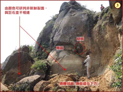 滑動的規模比崩塌還大,滑動的類型大致有弧型滑動、平面型滑動及楔型滑動。滑動的觸發條件主要為降雨、地震及人為開發。